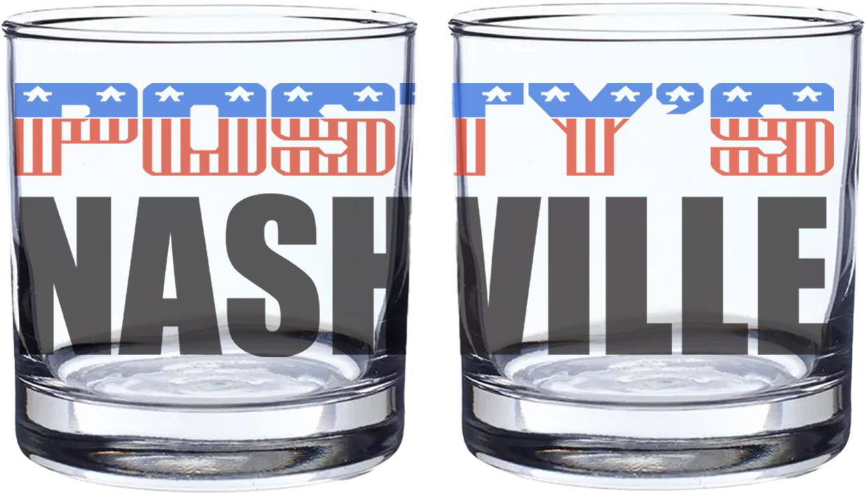 8oz rocks glass featuring our patrotic Posty's logo and Nashville on the front.